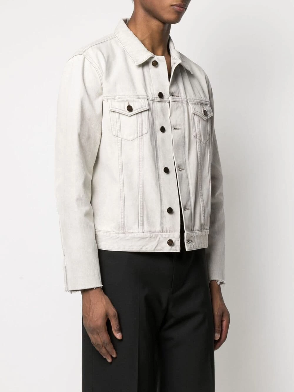 Denim, but a little different. This light grey jacket from Saint Laurent is designed with fringed edges at the sleeves that will add an edgy flair to your looks. Out with the old…