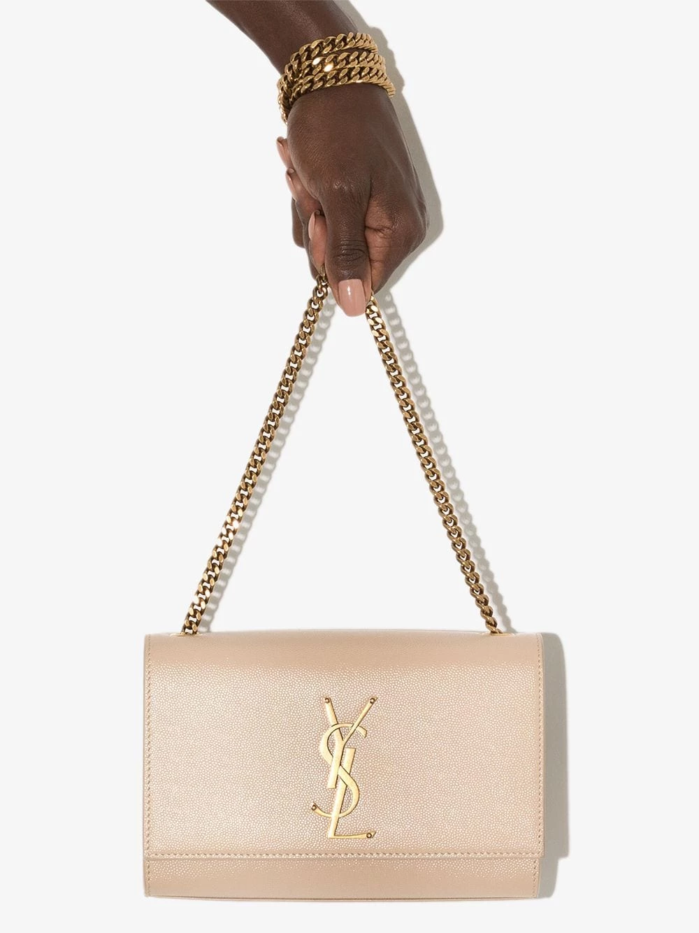 Saint Laurent’s Kate bags are instantly recognisable thanks to the YSL initials that adorn them. Here, the iconic motif decorates the silhouette of this beige crossbody bag, which is constructed from smooth leather for a soft feel.
