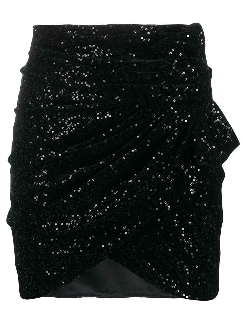Founded in 1961 by innovative designer Yves Saint Laurent, French luxury fashion house Saint Laurent fuses expert craftsmanship with the label’s signature rock’n’roll flair. Crafted from black silk, this sequinned mini skirt features a high waist, sequin embroidery, a draped design, an asymmetric hem, a back zip fastening and a short length.