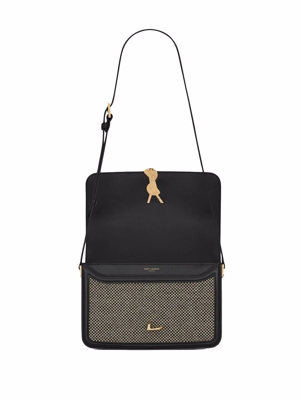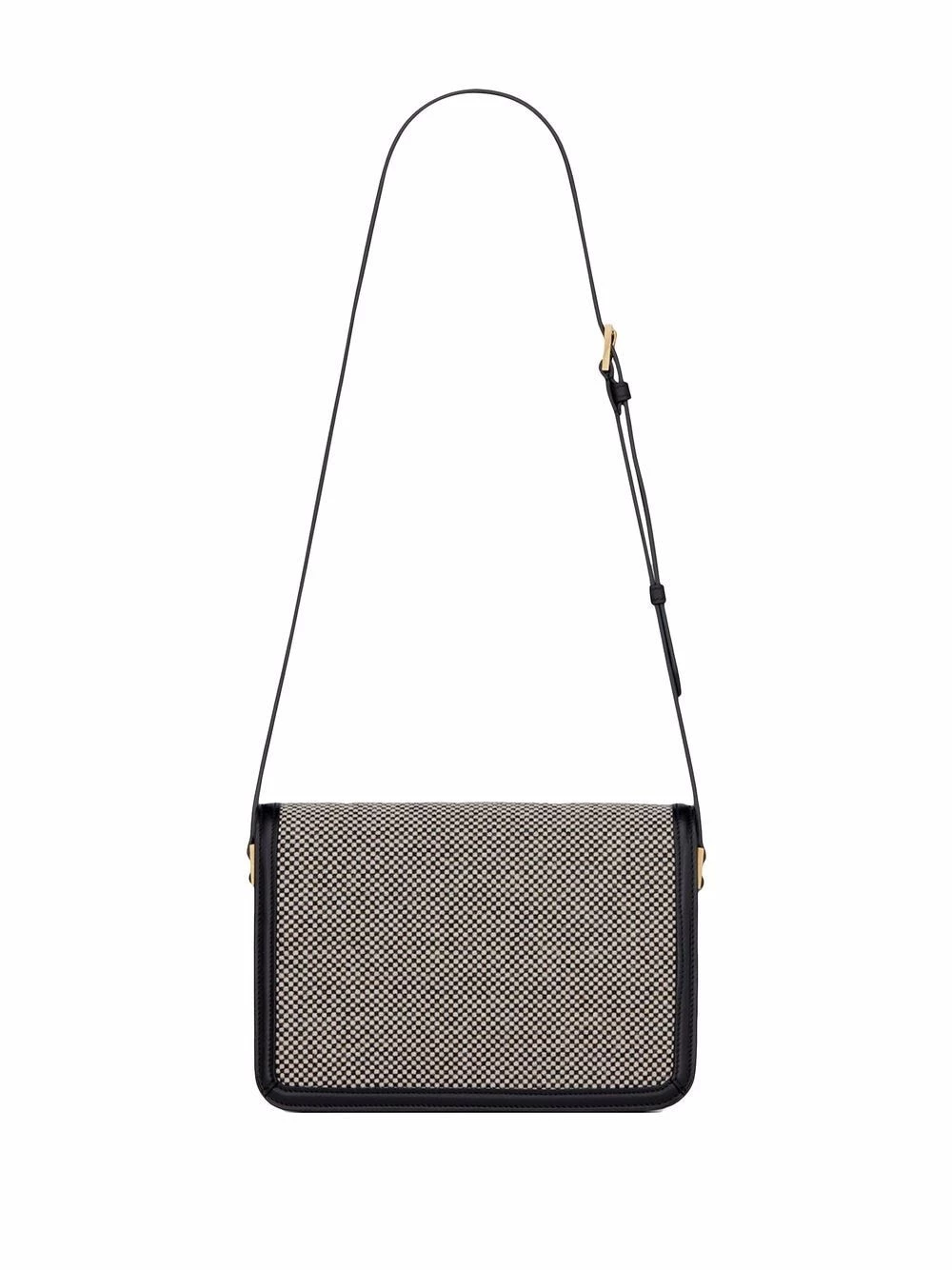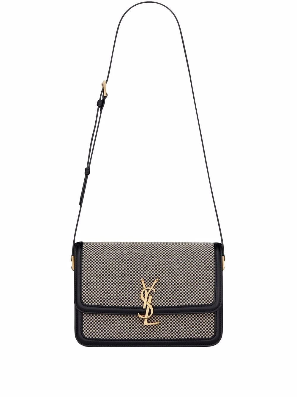 First introduced for Saint Laurent’s AW20 collection, the Solferino bag is now part of the house’s AW21 edit in new seasonal iterations. Crafted in Italy from check-print canvas and smooth leather, this practical yet refined accessory boasts a signature YSL plaque at the front and is finished with gold-tone hardware.