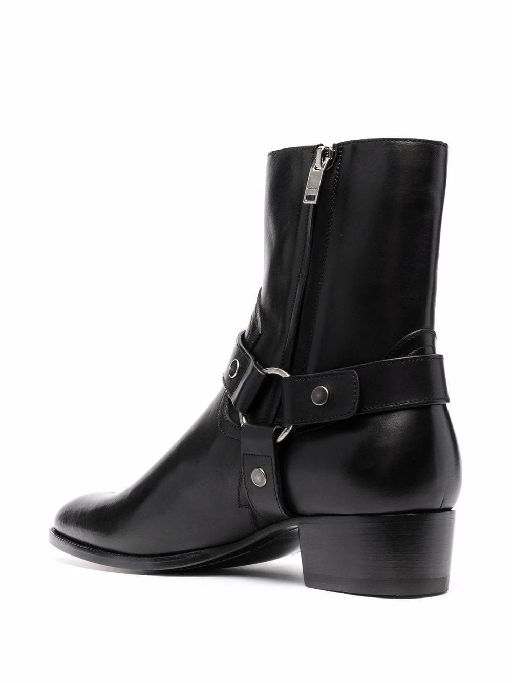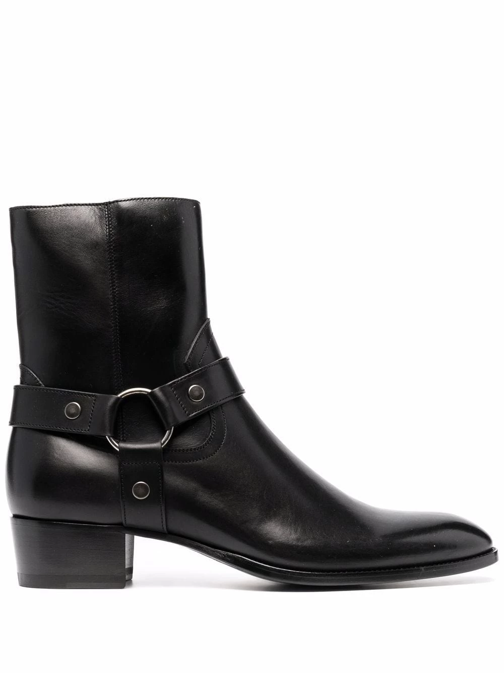 Known for their rock ‘n’ roll aesthetic, this pair of Wyat 40mm ankle boots from Saint Laurent are dressed in sleek polished black leather. Crafted in France, they sit atop a low stacked heel and benefit from a harness detail.