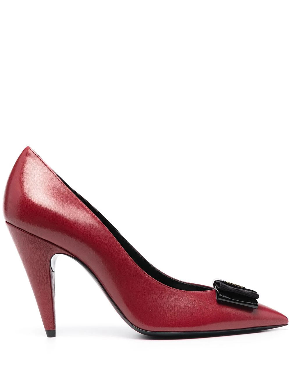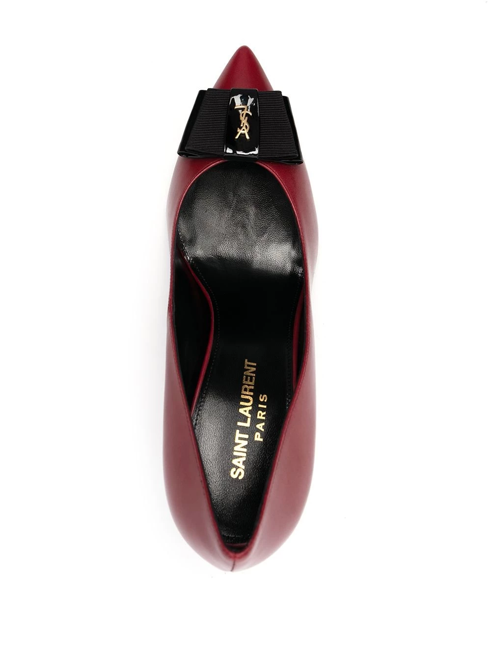 Delicately stylish. Crafted from leather, these pumps from Saint Laurent are finished with an interlocking YSL logo plaque placed atop a delicate bow detail. Treat yourself.