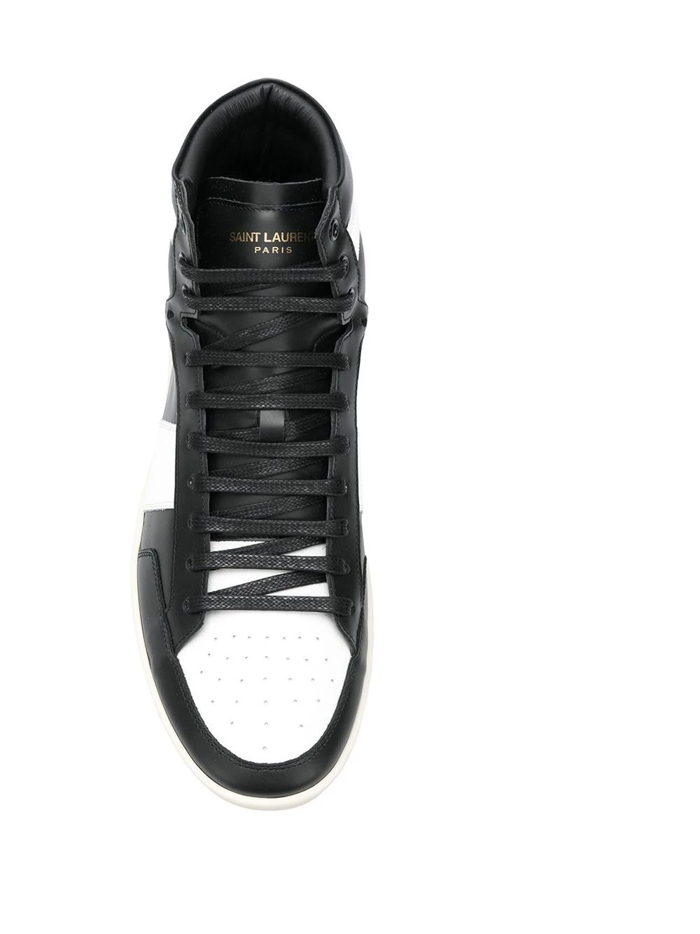 Whether you’re serving an ace or just serving some style, these black and white calf leather Court Classic SL/10 sneakers from Saint Laurent are sure to aid your game. Designed with perforated detailing and contrasting panels, these high-top pair might just convince you to grab your racket…then swiftly put it back down again. It’s the thought that counts. Featuring contrasting panels, a brand embossed tongue, a lace-up front fastening, a perforated detail, a round toe, and a rubber sole.